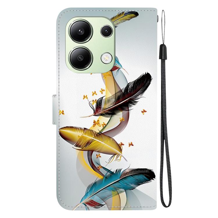 Funda de Cuero con Dibujo de Colores y Textura de Cristal Global para Redmi Note 13 4G (Plumas de Mariposa Doradas)