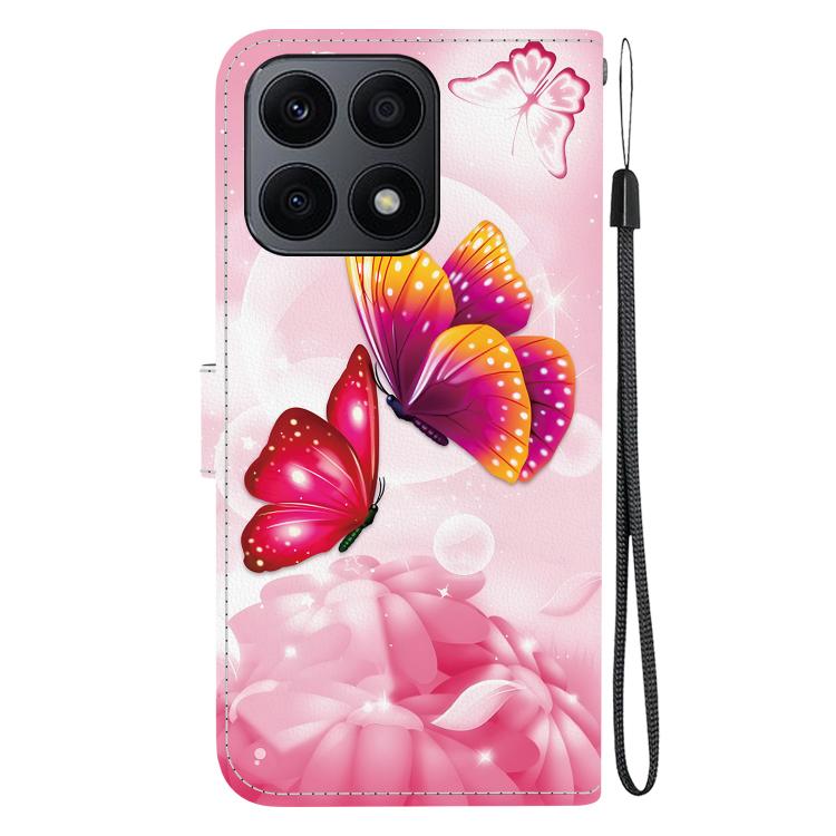 Funda de Cuero para Honor X8A con Dibujo de Colores y Textura de Cristal (Mariposas Rosas)