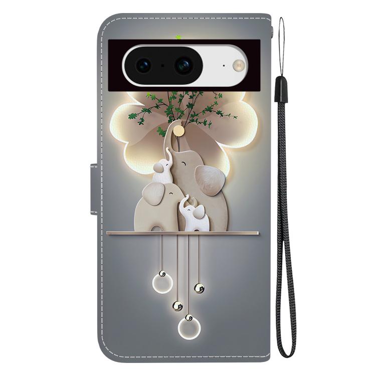 Funda de Cuero para Google Pixel 8 con Dibujo de Colores y Textura de Cristal (Elefantes)