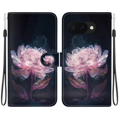 Funda de Cuero con Dibujo y Textura de Cristal para Google Pixel 9A (Peonía Morada)
