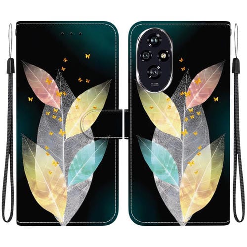 Funda de Cuero para Honor 200 5G con Dibujo de Hojas de Colores y Textura de Cristal
