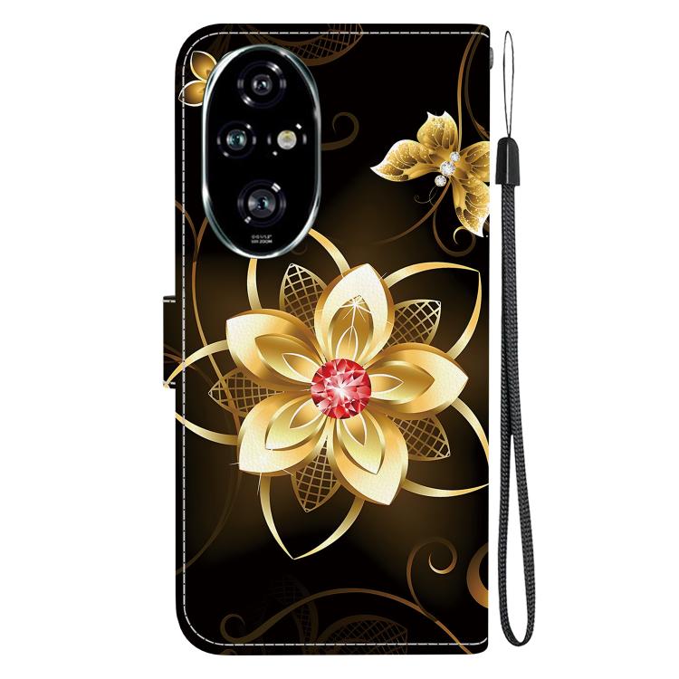 Funda de Cuero Honor 200 Pro 5G con Dibujo de Colores y Textura de Cristal (Flor Dorada)