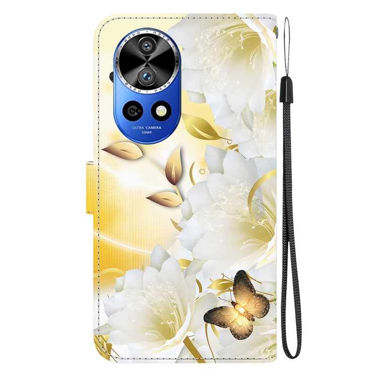 Funda de Cuero para Huawei Nova 12 Pro con Dibujo de Colores y Textura de Cristal (Mariposa Dorada Epiphyllum)