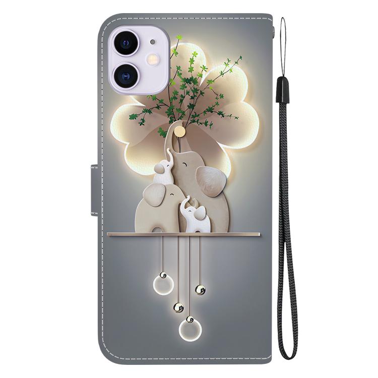 Funda de Cuero para iPhone 11 con Dibujo de Colores y Textura de Cristal (Tres Ciervos)