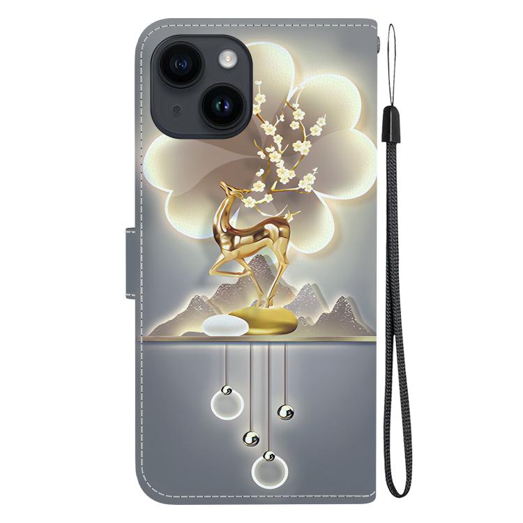 Funda de Cuero iPhone 14 Dibujo Colores Textura Cristal (Ciervo Sika)