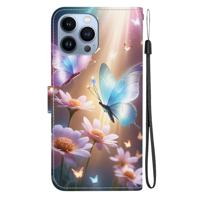 Funda de Cuero para iPhone 14 Pro con Dibujo de Colores y Textura de Cristal (Mariposa, Amor, Flor)