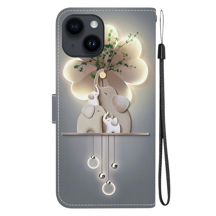 Funda de Cuero iPhone 15 Plus Dibujo de Colores Textura de Cristal (Tres Ciervos)
