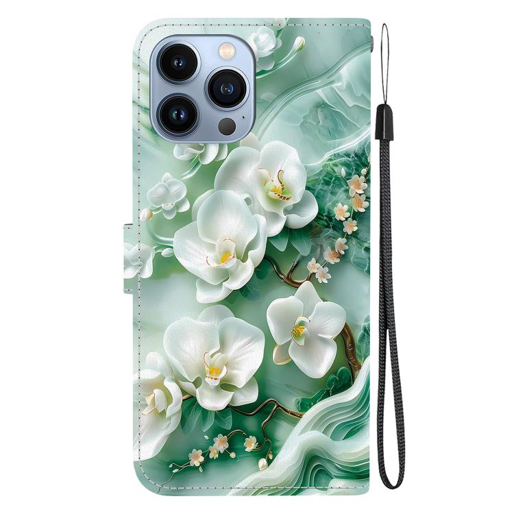Funda de Cuero iPhone 15 Pro Max Dibujo de Colores Textura de Cristal (Flores de Jade)