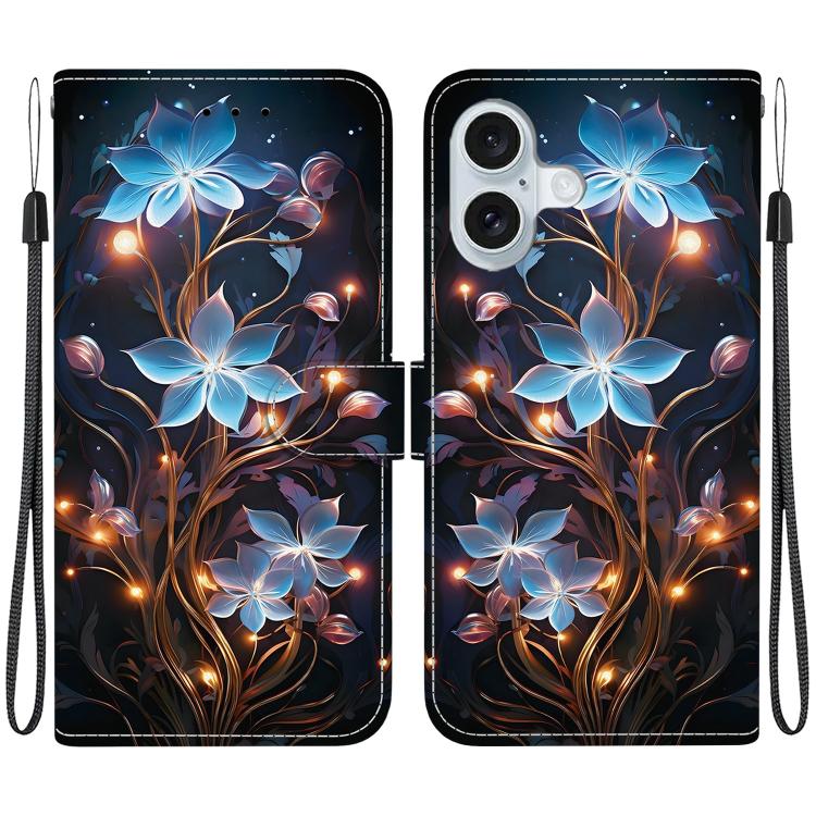 Funda de Cuero Apple para iPhone 16 con Dibujo de Colores y Textura de Cristal (Flor de Linterna Pequeña)