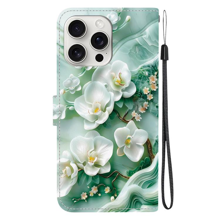 Funda de Cuero para iPhone 16 Pro Max con Dibujo de Colores y Textura de Cristal (Flores de Jade)