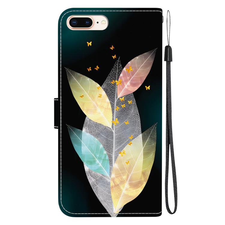 Funda de Cuero para iPhone 7 Plus 8 Plus con Dibujo de Colores y Textura de Cristal (Hojas de Colores)