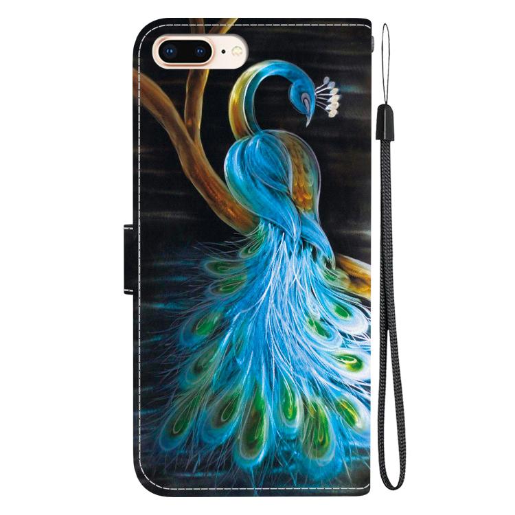 Funda de Cuero iPhone 7 Plus/8 Plus Dibujo Colores Textura Cristal (Pavo Real)