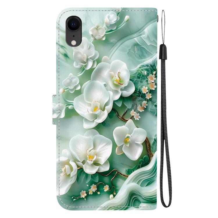 Funda de Cuero para iPhone Xr con Dibujo de Colores y Textura de Cristal (Flores de Jade)