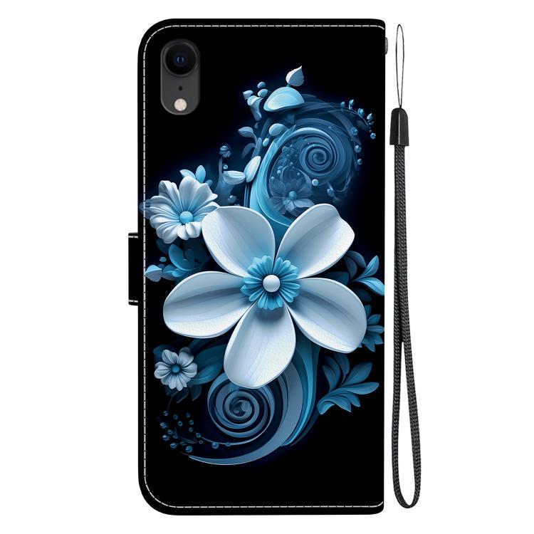 Funda de Cuero con Dibujo de Colores y Textura de Cristal para iPhone Xr (Orquídea Negra)