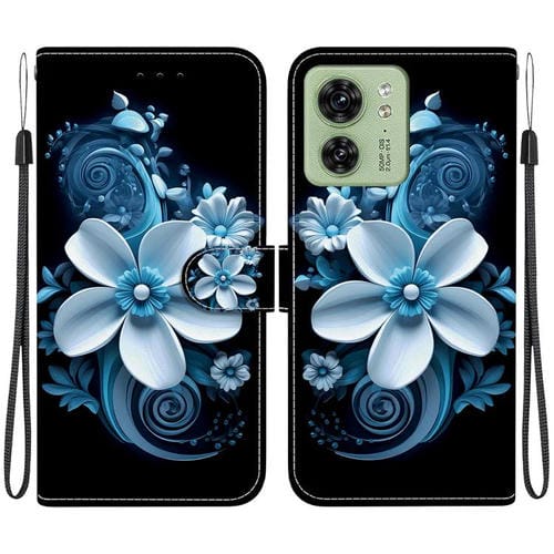 Funda de Cuero para Motorola Edge 40 con Dibujo de Colores y Textura de Cristal (Orquídea Negra)