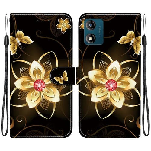 Funda de Cuero para Motorola Moto E13 con Dibujo de Colores y Textura de Cristal (Flor Dorada)