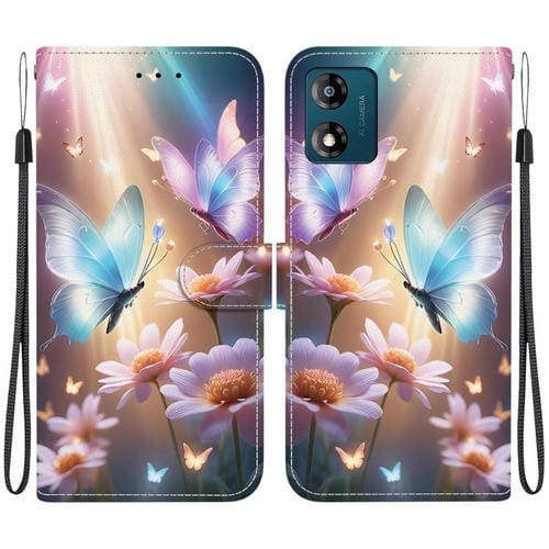Funda de Cuero para Motorola Moto E13 con Dibujo de Colores y Textura de Cristal (Mariposa, Amor y Flores)