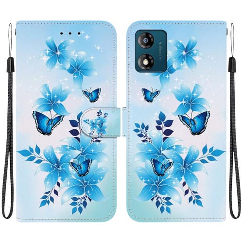 Funda de Cuero para Motorola Moto E13 con Dibujo de Colores y Textura de Cristal (Mariposas Azules)