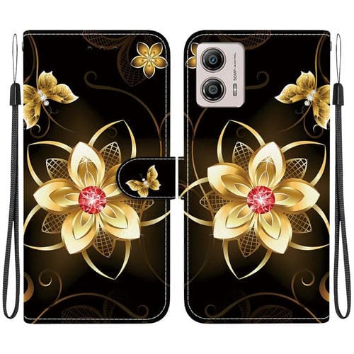 Funda de Cuero para Motorola Moto G13/G23/G53 con Dibujo de Colores y Textura de Cristal (Flor Dorada)