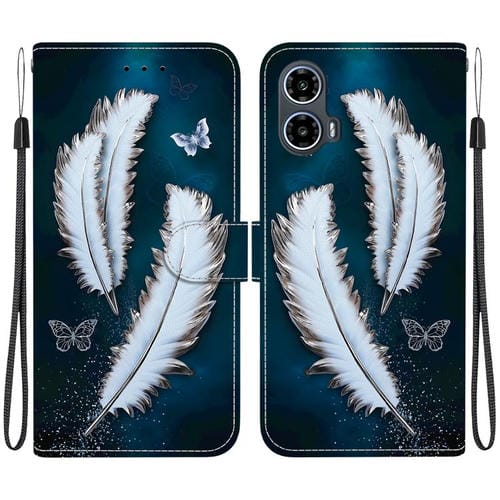 Funda de Cuero para Motorola Moto G34 5G con Dibujo de Colores y Textura de Cristal (Plumas de Mariposa Blancas)