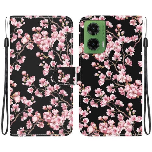 Funda de Cuero para Motorola Moto G35 con Dibujo de Colores y Textura de Cristal (Flor de Ciruelo)