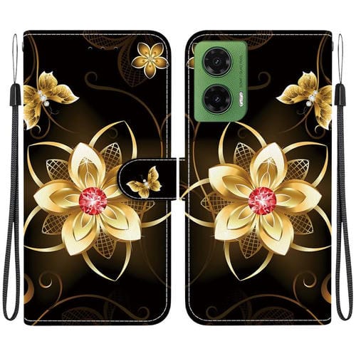 Funda de Cuero para Motorola Moto G35 con Dibujo de Colores y Textura de Cristal (Flor Dorada)
