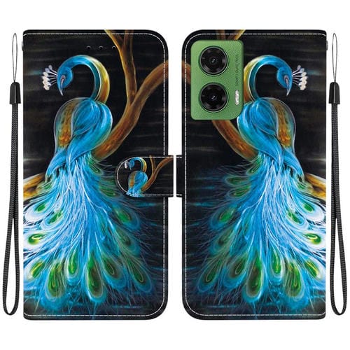 Funda de Cuero Motorola Moto G35 con Dibujo de Colores y Textura de Cristal (Pavo Real)