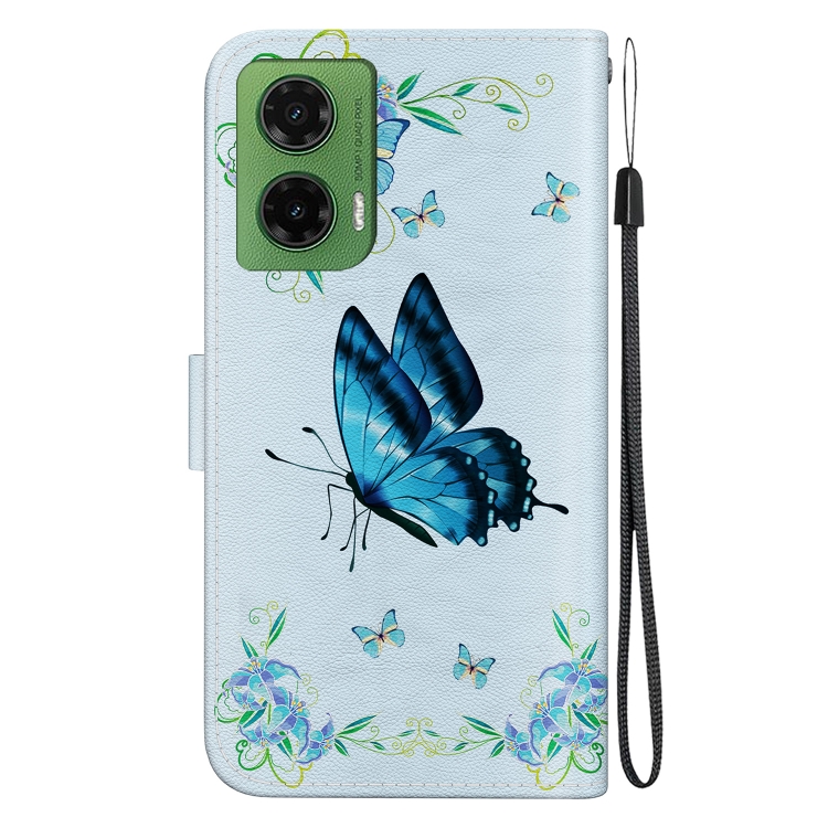 Funda de Cuero Motorola Moto G35 con Dibujo de Colores y Textura de Cristal (Pensamientos Azules)