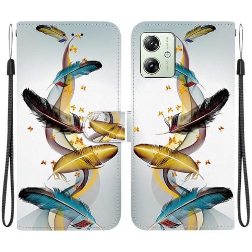 Funda de Cuero para Motorola Moto G54 con Dibujo de Colores y Textura de Cristal (Plumas de Mariposa Doradas)