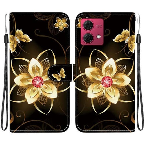 Funda de Cuero con Dibujo y Textura de Cristal para Motorola Moto G84 (Flor Dorada)