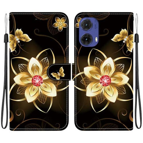 Funda de Cuero para Motorola Moto G85 con Dibujo de Colores y Textura de Cristal (Flor Dorada)