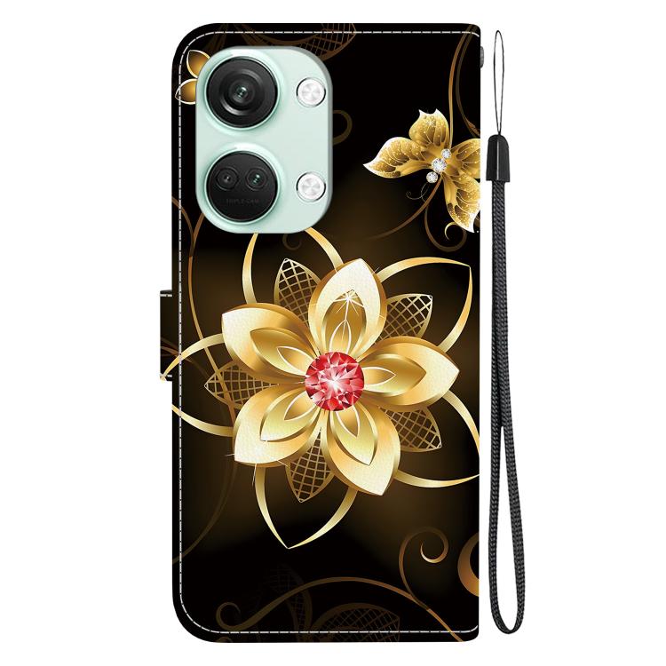 Funda de Cuero para OnePlus Ace 2V 5G y Nord 3 con Dibujo de Colores y Textura de Cristal (Flor Dorada)