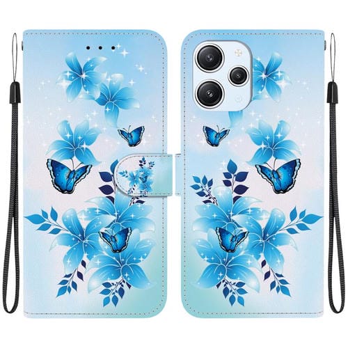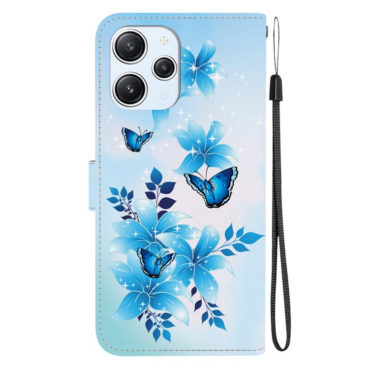 Funda de Cuero con Dibujo de Colores y Textura de Cristal para Redmi 12 4G/5G/Poco M6 Pro (Mariposas Azules)