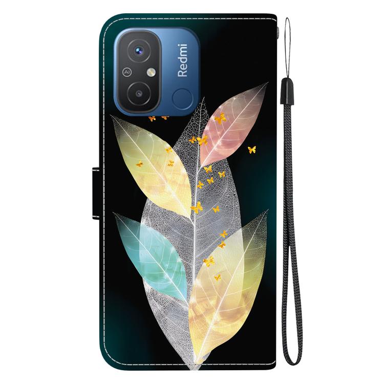 Funda de Cuero con Dibujo de Colores y Textura de Cristal para Redmi 12C/11A (Hojas de Colores)