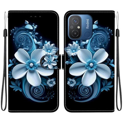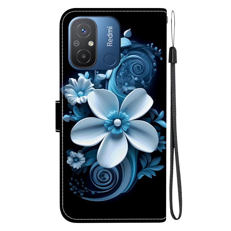 Funda de Cuero con Dibujo de Colores y Textura de Cristal para Redmi 12C/11A (Orquídea Negra)