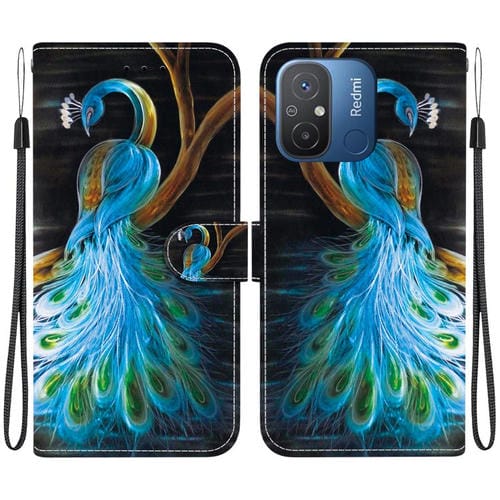 Funda de Cuero con Dibujo de Colores y Textura de Cristal para Redmi 12C/11A (Pavo Real)