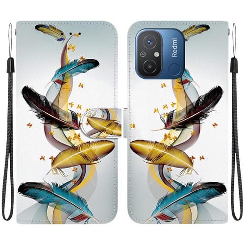 Funda de Cuero con Dibujo de Colores y Textura de Cristal para Redmi 12C/11A (Plumas de Mariposa Doradas)