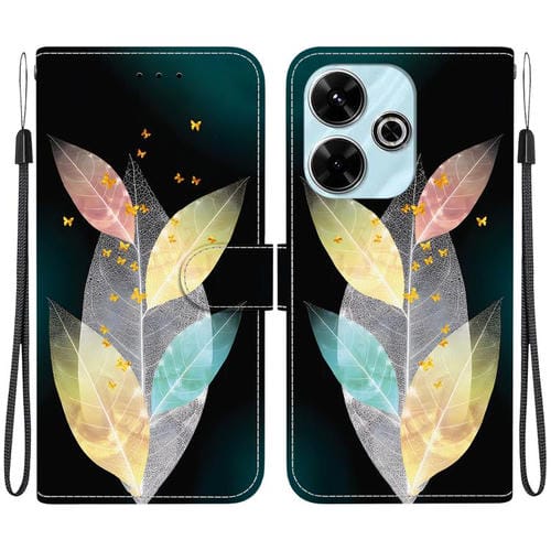 Funda de Cuero con Dibujo de Colores y Textura de Cristal para Redmi 13 4G/Poco M6 (Hojas de Colores)