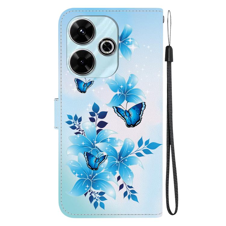 Funda de Cuero con Dibujo de Colores y Textura de Cristal para Redmi 13 4G/Poco M6 (Mariposas Azules)