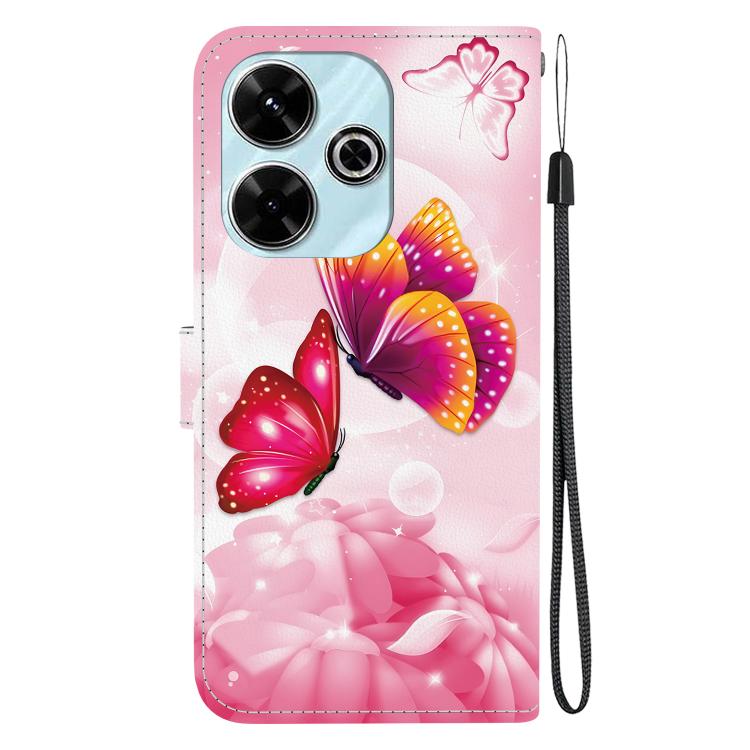 Funda de Cuero con Dibujo de Colores y Textura de Cristal para Redmi 13 4G / Poco M6 (Mariposas Rosas)