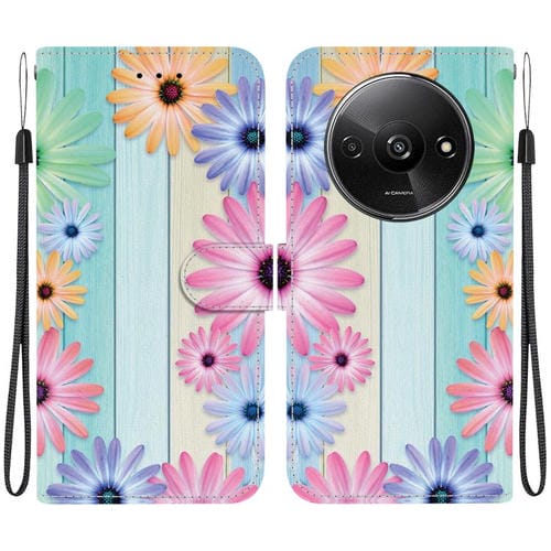 Funda de Cuero con Dibujo de Colores y Textura de Cristal para Redmi A3 (Girasoles)