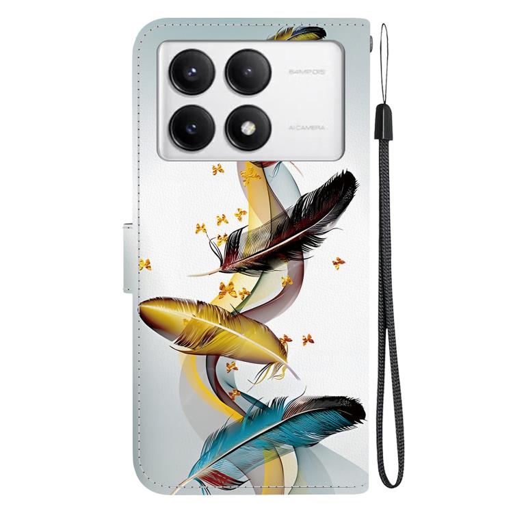 Funda de Cuero con Dibujo de Colores y Textura de Cristal para Redmi K70/K70 Pro (Plumas de Mariposa Doradas)