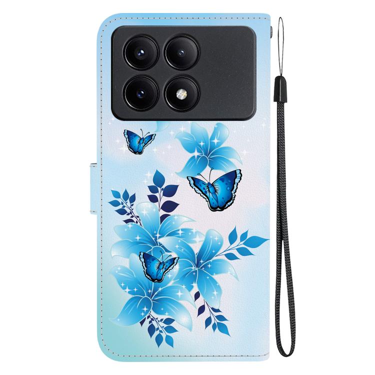 Funda de Cuero con Dibujo de Colores y Textura de Cristal para Redmi K70E/Poco X6 Pro (Mariposas Azules)