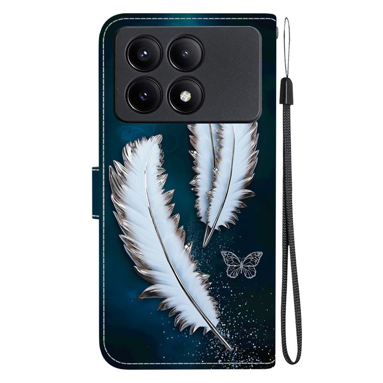 Funda de Cuero con Dibujo de Colores y Textura de Cristal para Redmi K70E/Poco X6 Pro (Plumas de Mariposa Blancas)