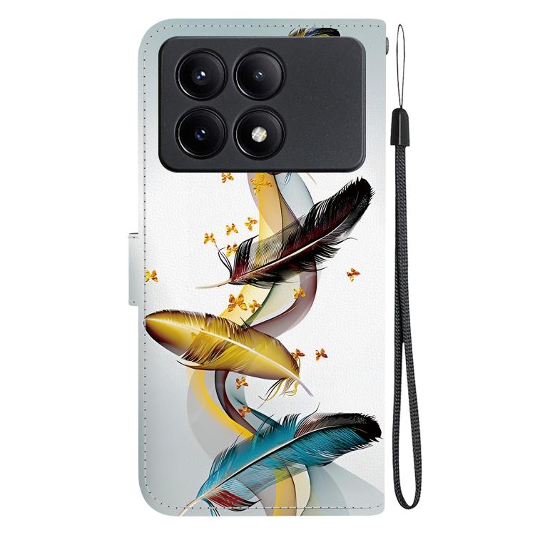 Funda de Cuero con Dibujo de Colores y Textura de Cristal para Redmi K70E/Poco X6 Pro (Plumas de Mariposa Doradas)