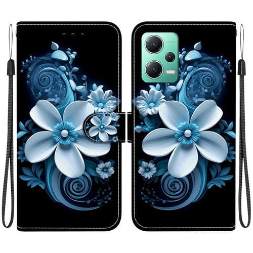 Funda de Cuero con Dibujo de Colores y Textura de Cristal para Redmi Note 12 5G/Poco X5 (Orquídea Negra)