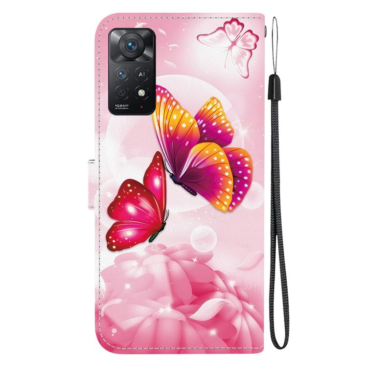 Funda de Cuero con Dibujo de Colores y Textura de Cristal para Redmi Note 12 Pro 4G (Mariposas Rosas)