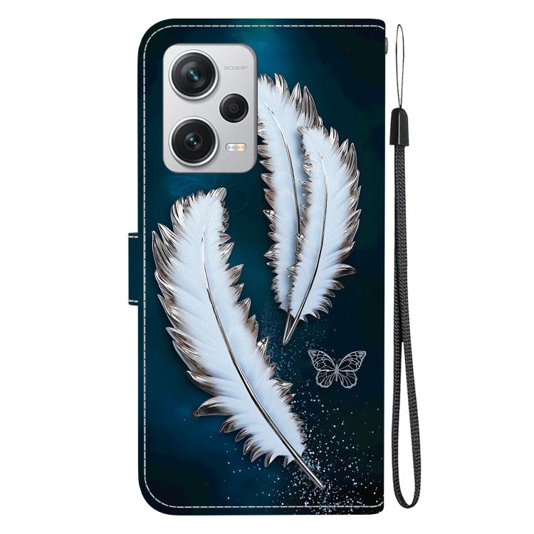 Funda de Cuero con Dibujo de Colores y Textura de Cristal para Redmi Note 12 Pro+ 5G (Plumas de Mariposa Blancas)