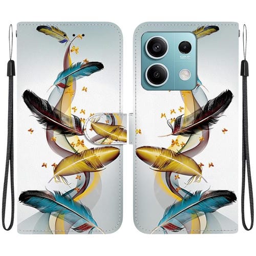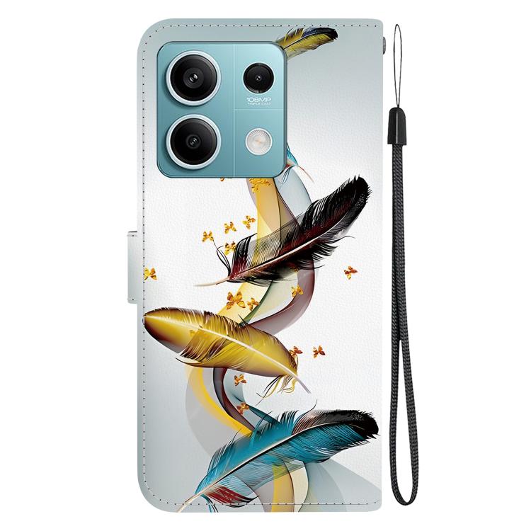 Funda de Cuero con Dibujo de Colores y Textura de Cristal para Redmi Note 13 5G (Plumas de Mariposa Doradas)