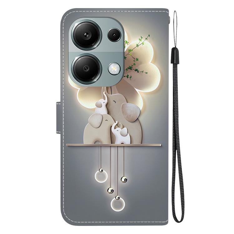 Funda de Cuero con Dibujo de Colores y Textura de Cristal para Redmi Note 13 Pro 4G / Poco M6 Pro (Elefantes)